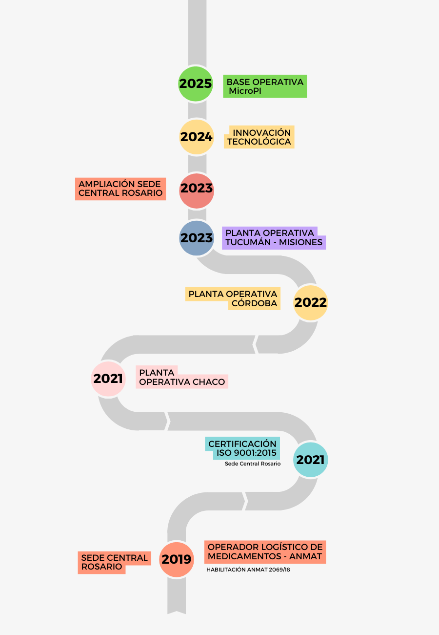 Nuestra sede central en Rosario es la única habilitada por ANMAT como operador logístico de medicamentos y cuenta con certificación ISO 9001:2015, lo que asegura el cumplimiento de los más altos estándares de calidad y trazabilidad en el manejo de productos farmacéuticos.